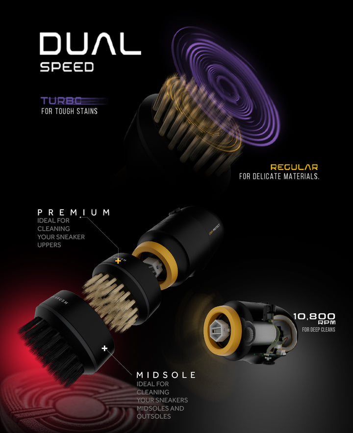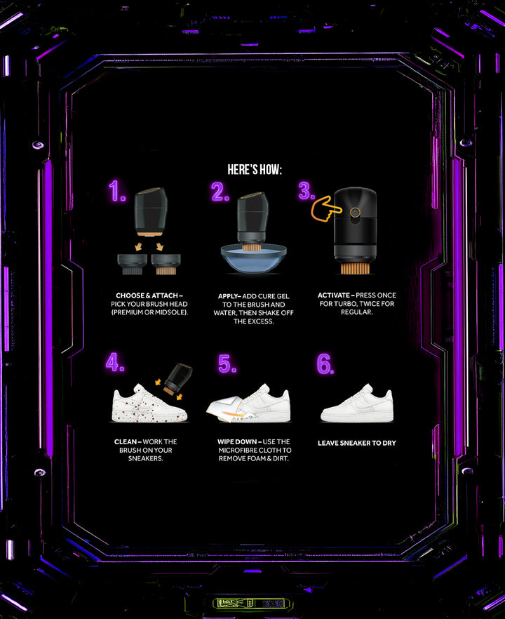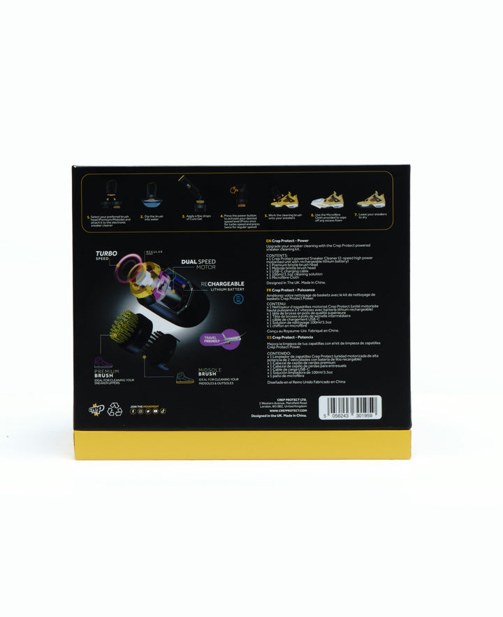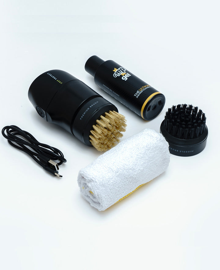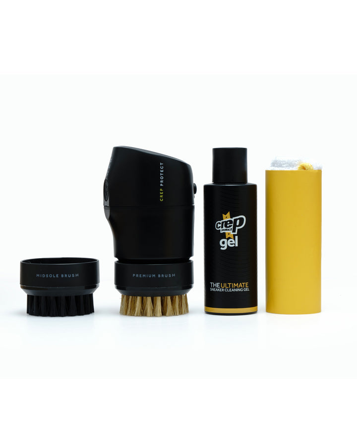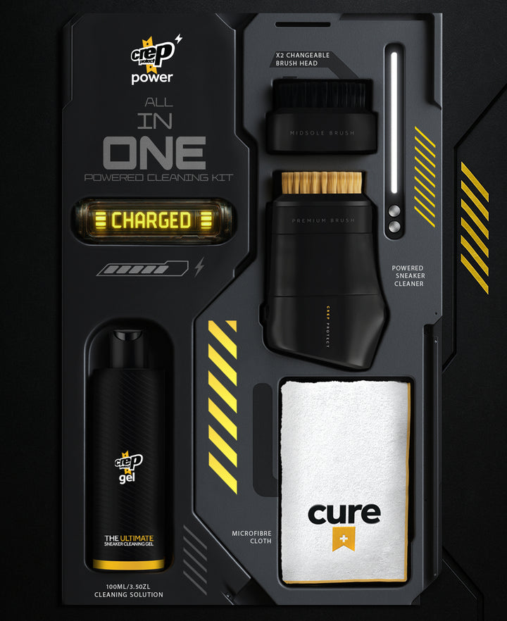 Featuring two brush types, Crep Protect Gel, and a Microfibre Cloth, this powered sneaker cleaning kit offers a hassle-free solution to sneaker cleaning, effortlessly delivering a fresh, out-of-the-box feel with every use.